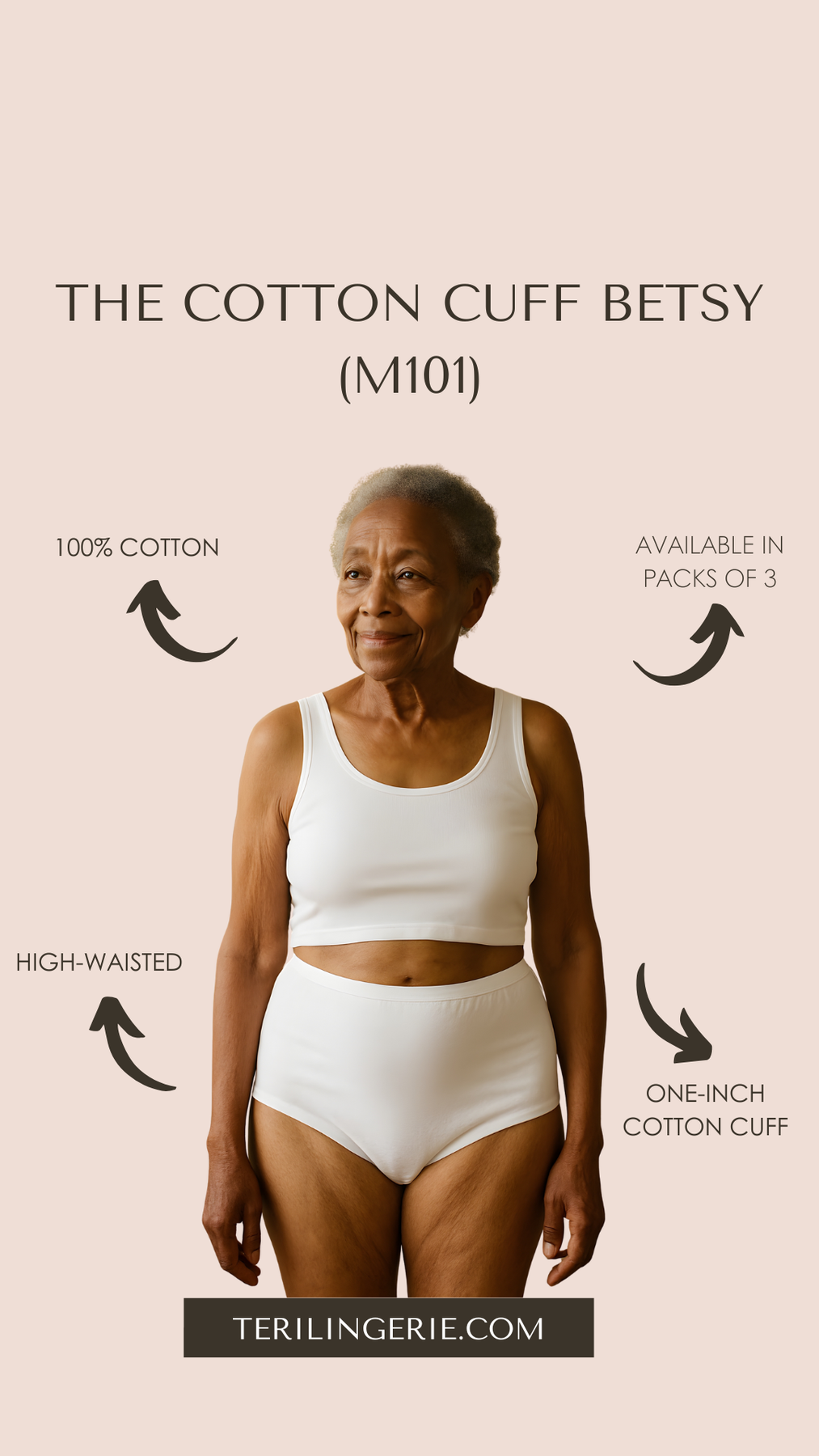 Introducing the Betsy Brief. Thoughtfully designed for women who prefer a truly modest fit, the Betsy is Teri’s highest-waist, most full-coverage cotton panty—made for comfort, coverage, and confidence.